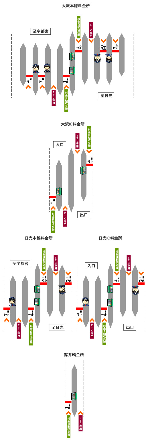 | お問い合わせ先 | 大沢料金所 TEL 0288-26-2580 日光料金所 TEL 0288-53-3573 篠井料金所 TEL 028-678-6106) |