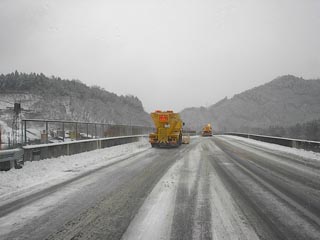 また、作業時は融雪剤も散布しておりますので、作業車に接近しないようにして下さい。
